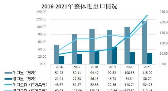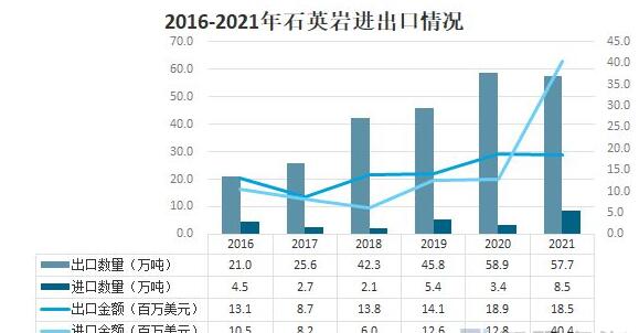 2016-2021年石英進(jìn)出口情況
