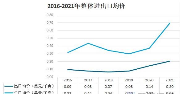 2016-2021年全體進(jìn)出口均價(jià)