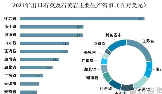 2021年出口石英及石英巖首要出產(chǎn)省市(百萬美元)